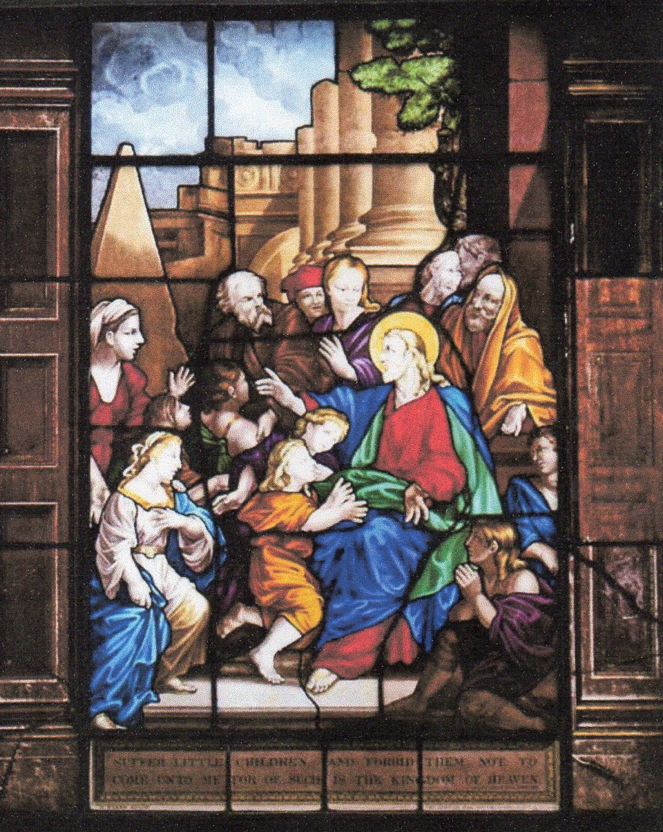 Repairs to the stained glass Chancel window and two stained windows at the west end, by Victorian glass artist and restorer, David Evans of Shrewsbury. Evans was a pioneer of a revived technique, abandoning the traditional Caroline and Georgian style of stained glass rectangles, in favour of cutting glass to follow the outlines of arms, heads, robes and other features of the design. Williams and Byrne of Stanton Lacy carried out the restoration and repairs. | |